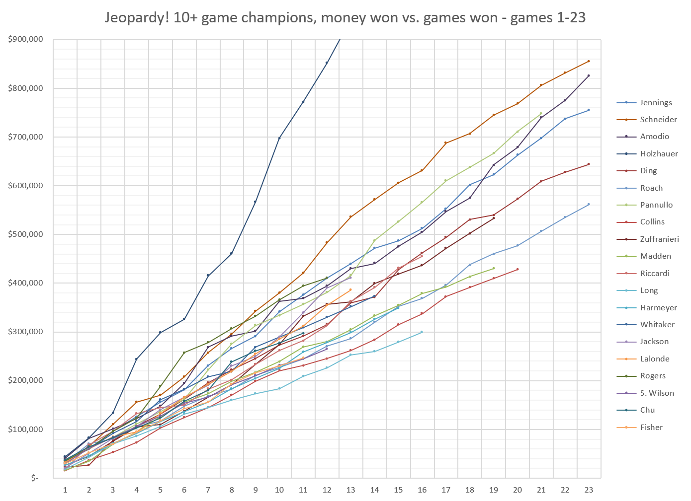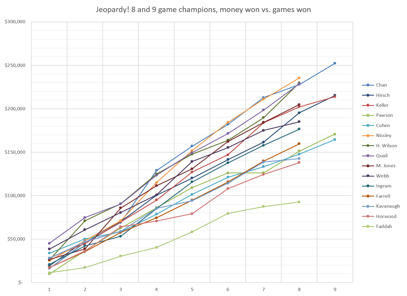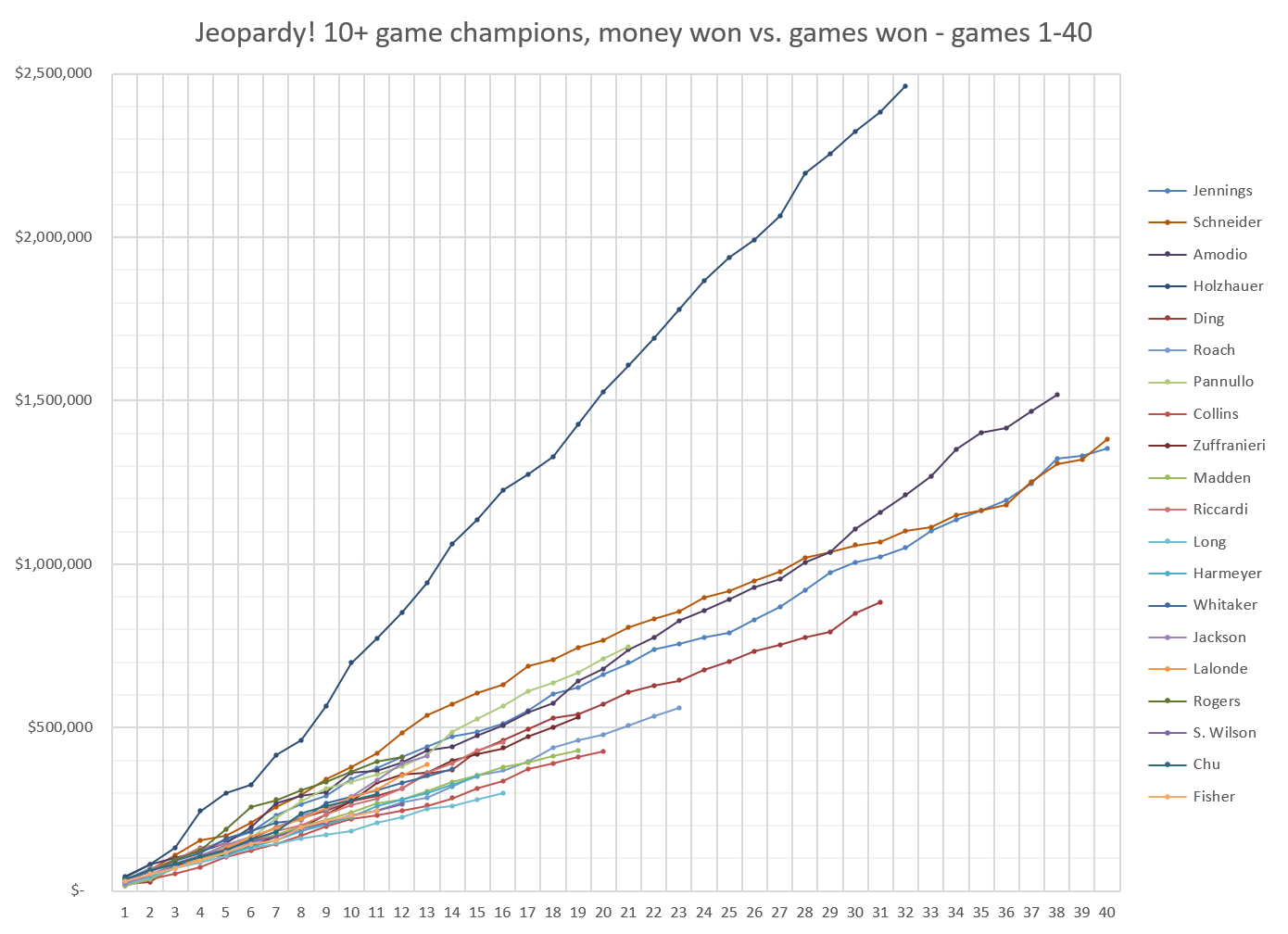 In the summer of 2014 I started watching America's Favorite Quiz Show regularly again, as the reruns of the Battle of the Decades were airing. This led to a lot of new websites discovered and a lot of Tweeting over the course of Season 31. I've started to compile some data about the show; this page serves as a repository for those pages, as well as important links.